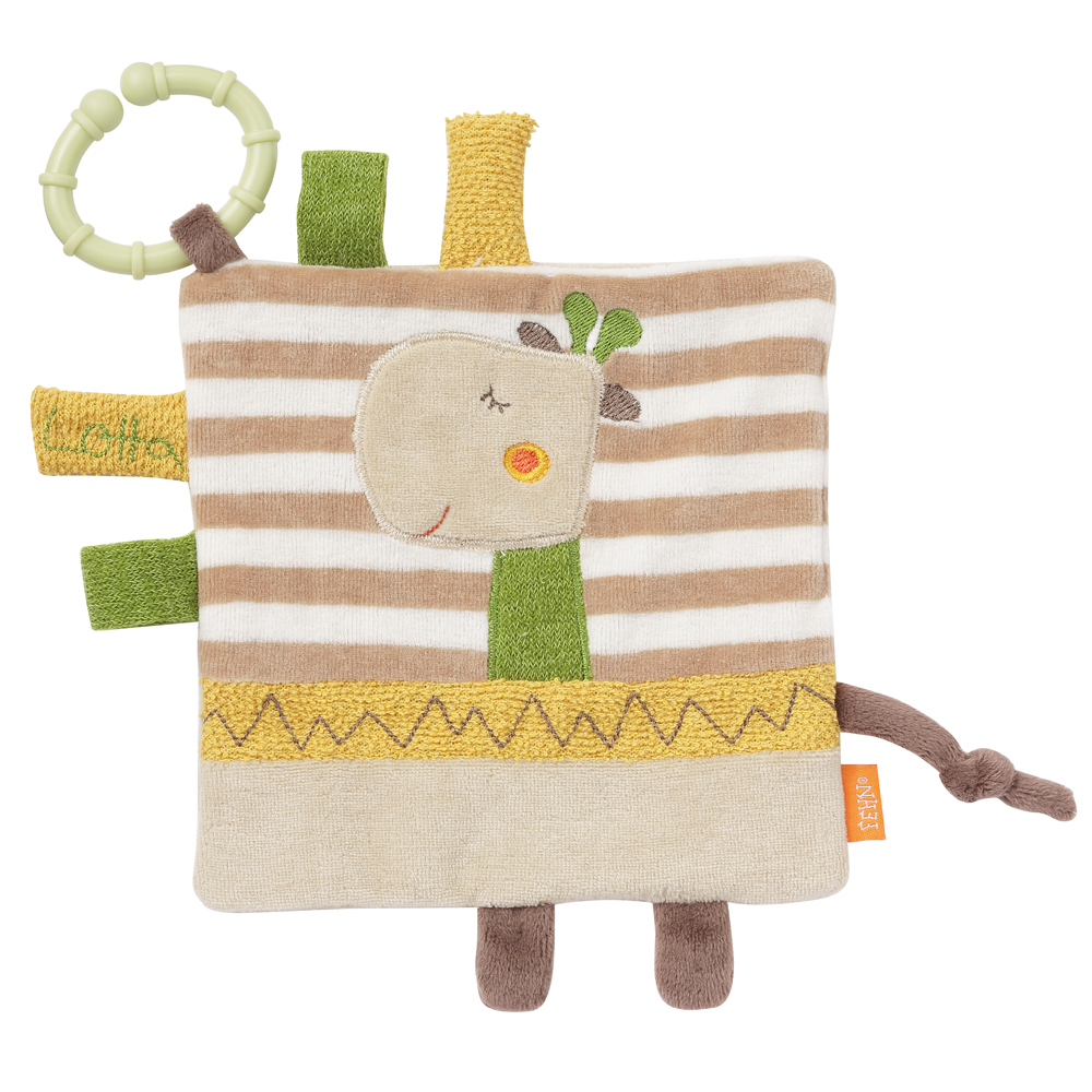 Das Fehn Knistertuch Giraffe aus der Loopy & Lotta-Kollektion lädt mit angenehmen Farben und interessanten Materialien zum Greifen, Spielen und Entdecken ein. Das flauschige Knistertuch ist mit liebevollen Details gestaltet: die aufgestickte Giraffe, die weichen Materialien und die Greifelemente laden zum Entdecken der Spielfunktionen Knisterpapier und Quietsche ein. Das Activity-Knistertuch wird schnell zum treuen Begleiter Ihres Babys.