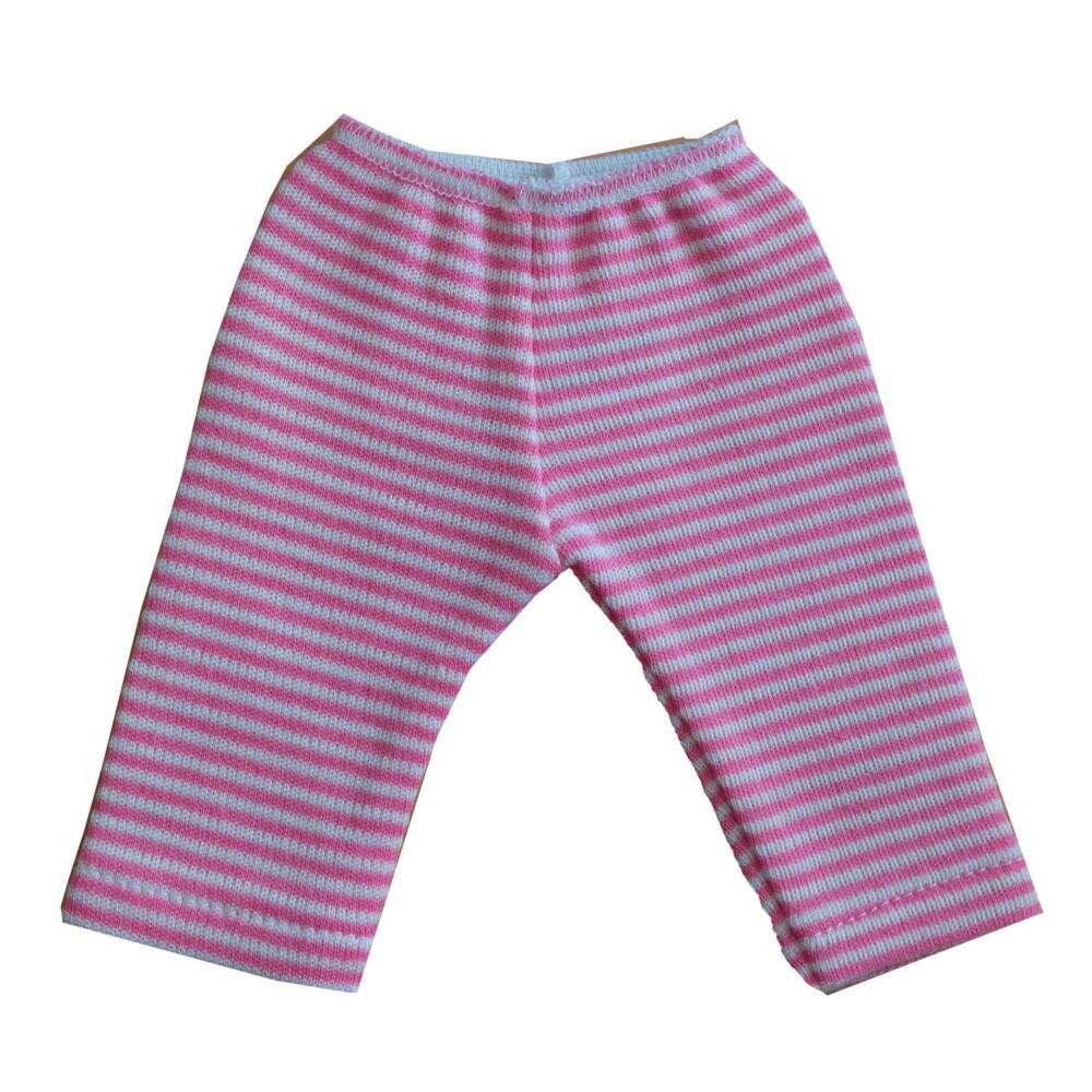 Die Leggins passen Babypuppen, die 42 bis 45 cm groß sind. Sie sind pink gestreift. Damit die Puppenmutti ihre Puppe einfach an- und ausziehen kann, haben die Leggins einen praktischen Gummizug, der sich dem Bauchumfang der Puppe anpasst.